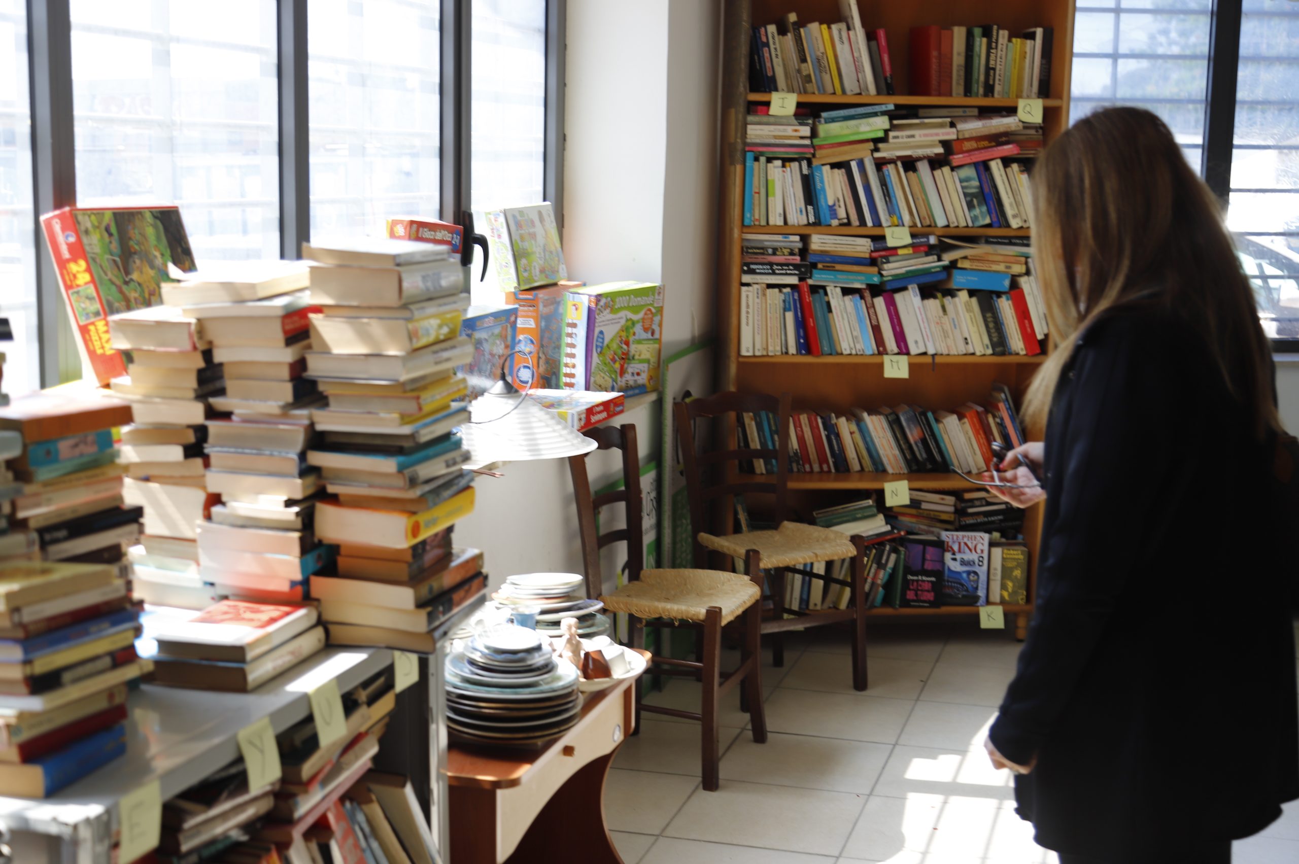 Fase di immagazzinamento: dopo la fase di accettazione i beni vengono collocati nell’area di deposito iniziale dove vengono catalogati e posizionati nel magazzino. La compilazione del catalogo dei beni usati prevede l’attribuzione della categoria e della tipologia e l’assegnazione della posizione di magazzino. Con la stessa classificazione il bene verrà pubblicato sulle nostre piattaforme web per essere condiviso. Nell’area di esposizione virtuale gli utenti possono prendere visione dei beni catalogati, assistiti in remoto dal personale del centro di riuso.
